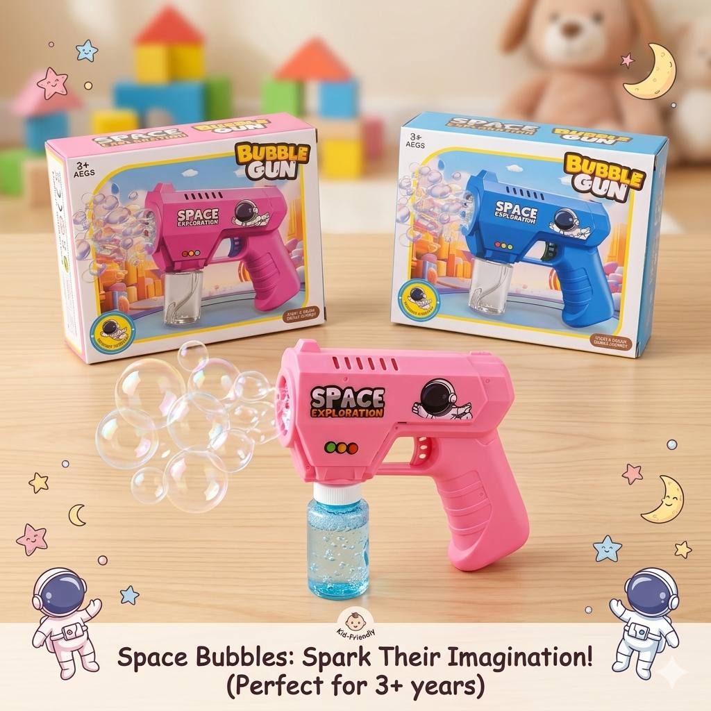 لعبة مسدس فقاعات رجل الفضاء للأطفال مع بطاريات مجانية