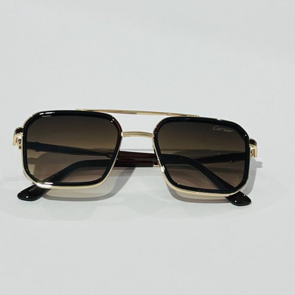نظارة شمسية رجالية تصميم شبيه CARTIER عدسات متدرجة باللون الأسود مع حافظة حماية