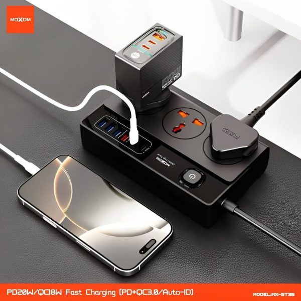 شاحن أصلي MOXOM كامل سريع 2 مداخل ايفون – تايب سي عريض