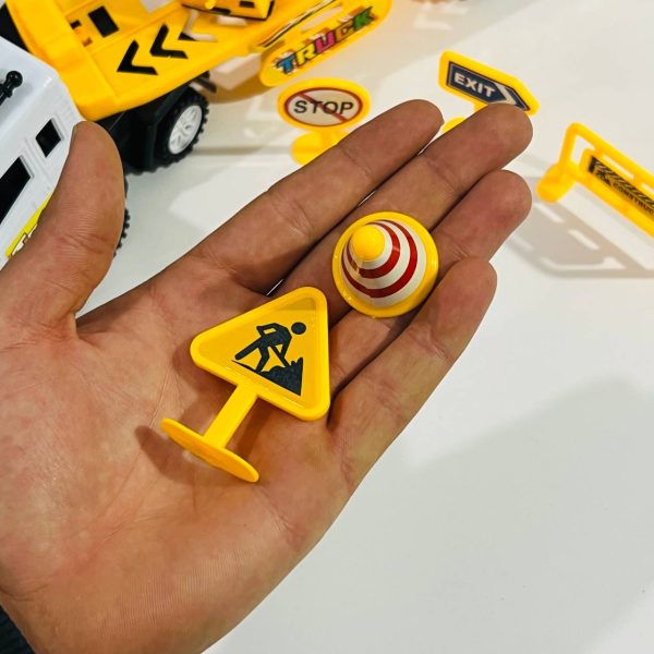 طقم لعبة شاحنة نقل حفار و رافعة مع علامات تنبية MOAF03