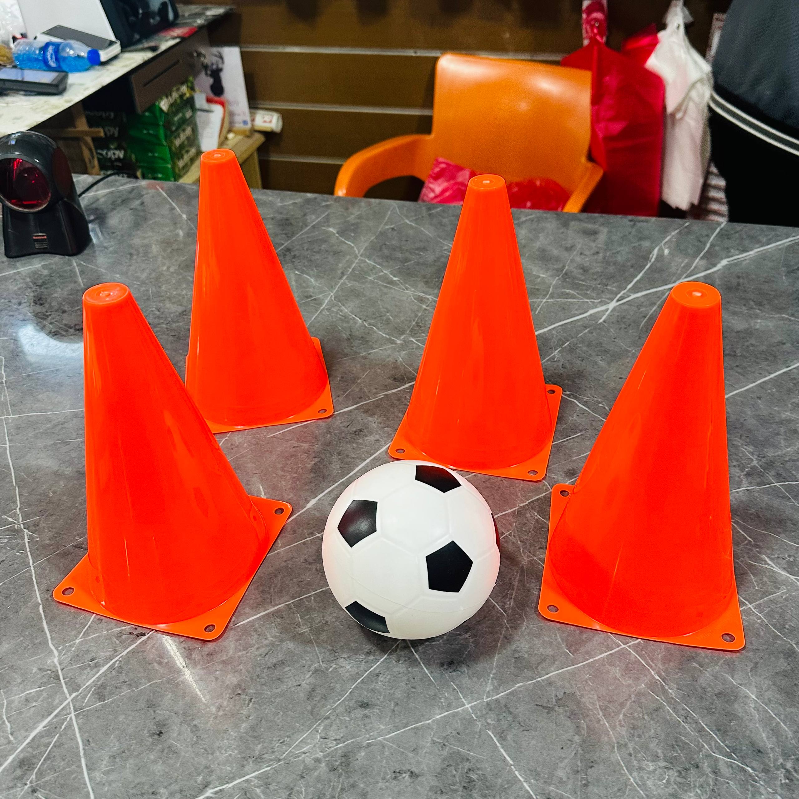 اقماع اللعب و التدريب والكرة للأطفال – 4 قمع وكرة نايلو صغيرة – مناسبة حتى مرمى