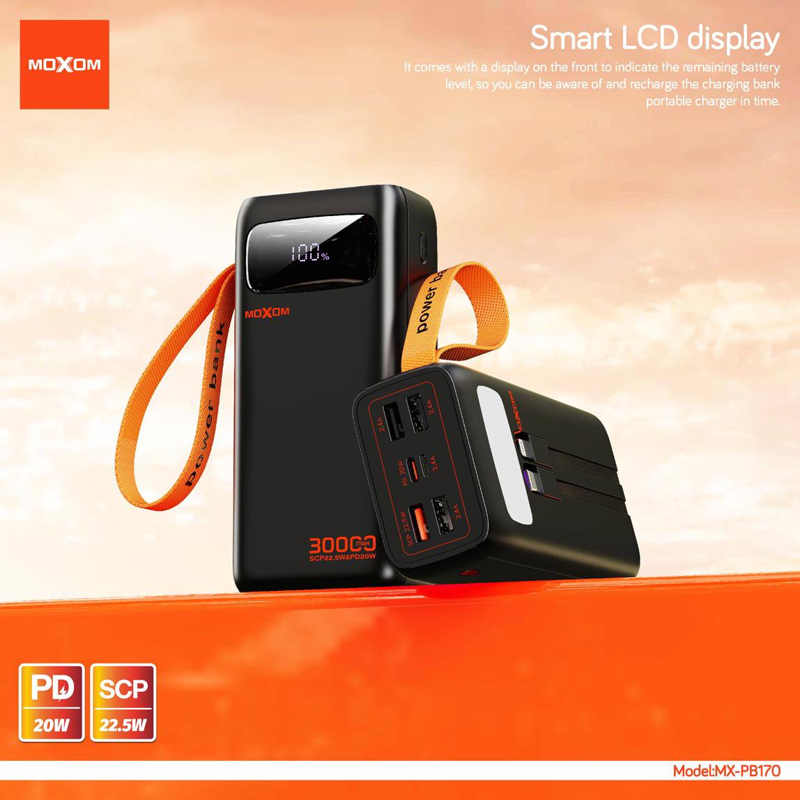 ⚡ سعة كبيرة: 30000mAh تكفي لشحن هاتفك عدة مرات.