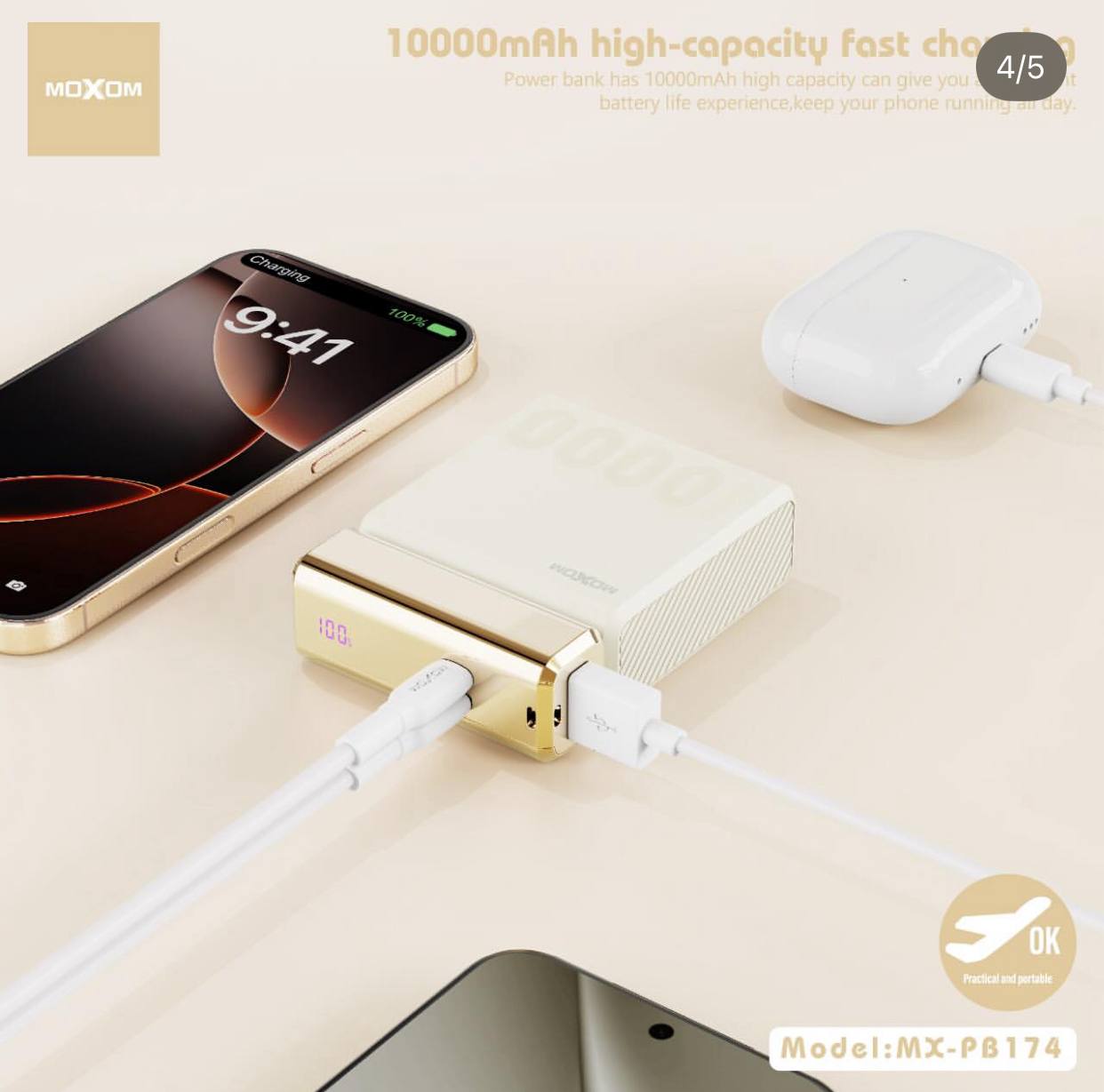 باور بنك Mini قوة 10000 محمول مع كابل ايفون موكسوم لون بيج – 3 مداخل