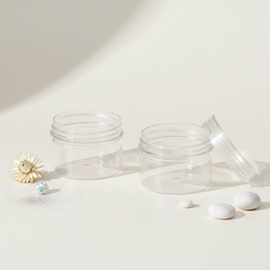 علب بلاستيك شفافة لحفظ المنتجات والكريمات غطاء فضي حجم 100 & 200 مل