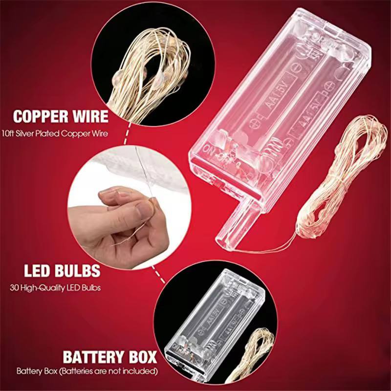 سرب خيط ضي LED لون أصفر بطاريات – مناسب لتزيين الباقات والبوكسات والهديا 2.3 متر