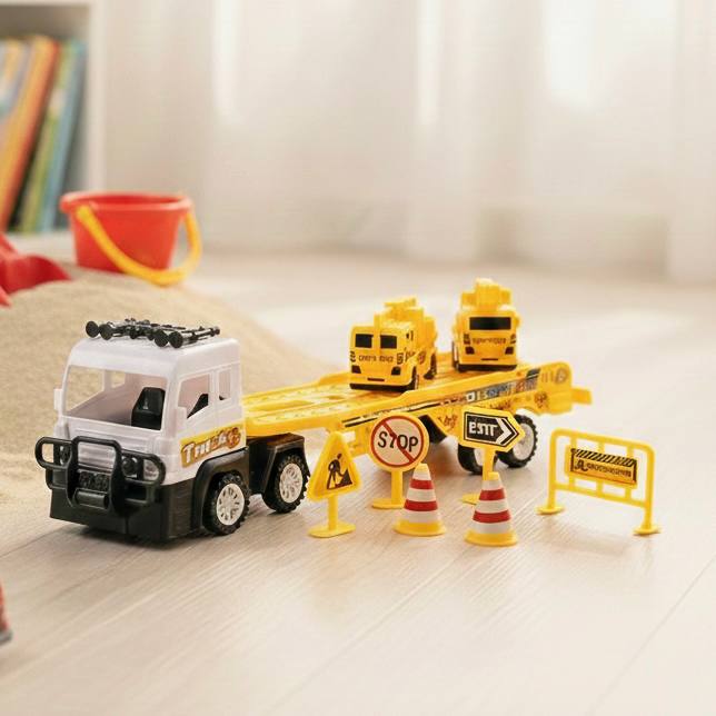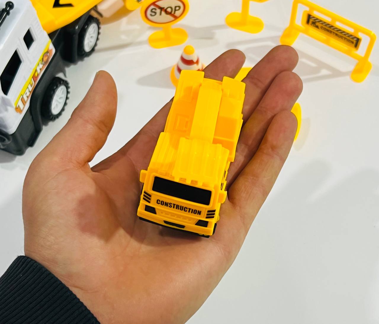 طقم لعبة شاحنة نقل حفار و رافعة مع علامات تنبية MOAF03