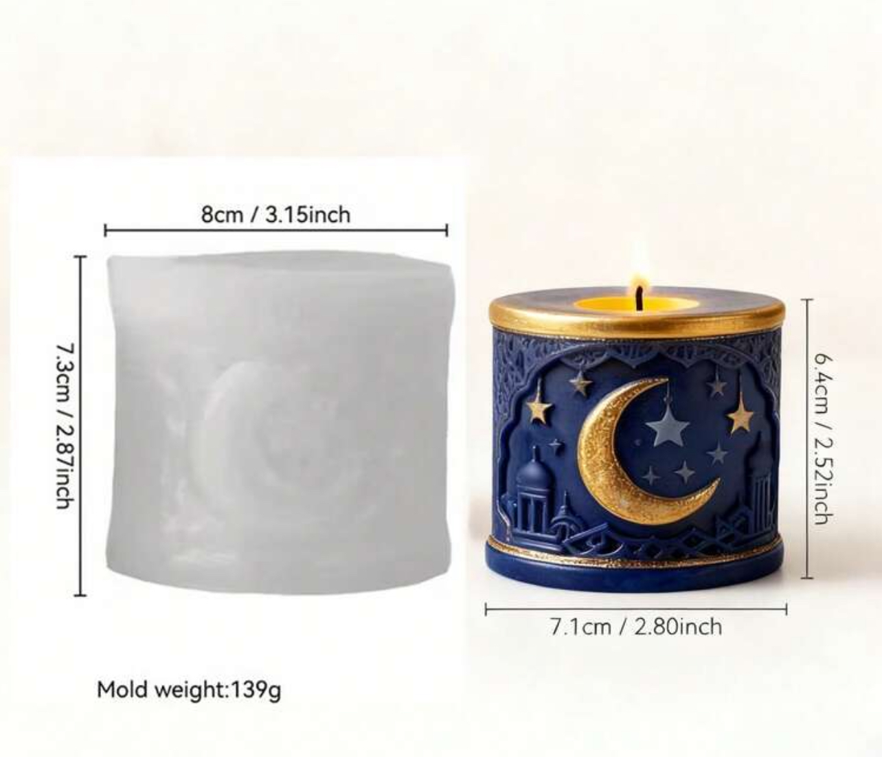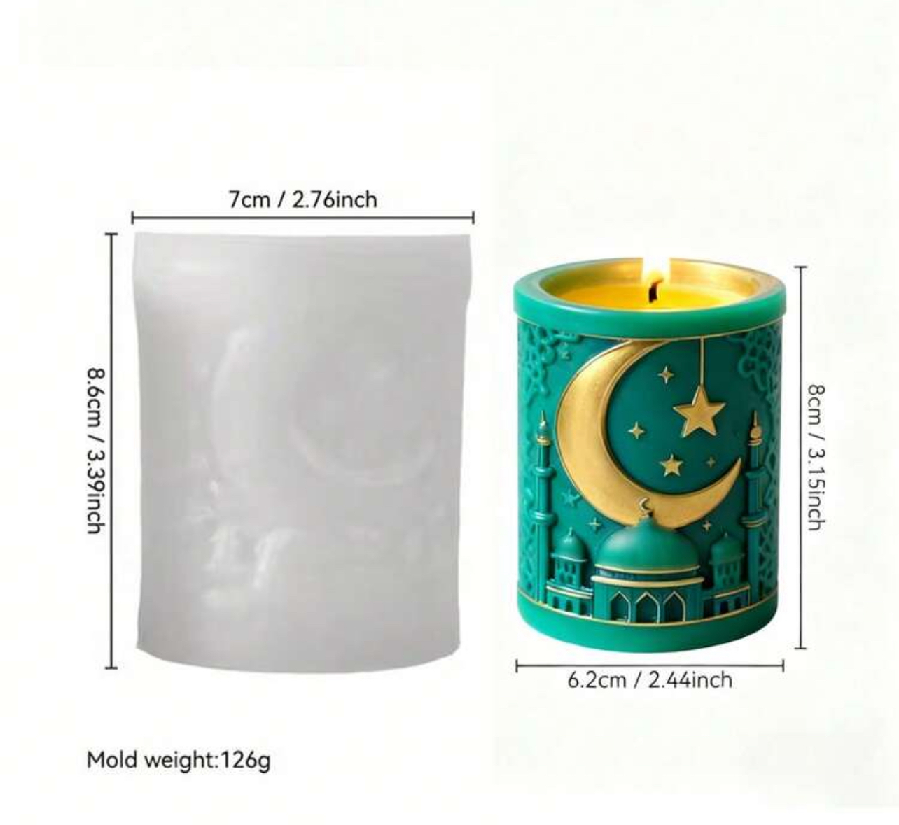 قالب سيلكون اسطواني بقش نجمة ⭐️ وهلال 🌙وجامع 🕌