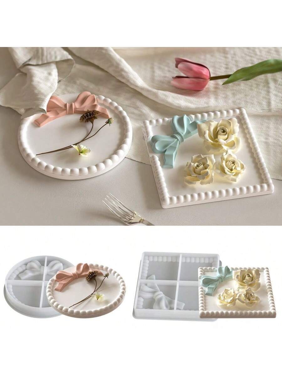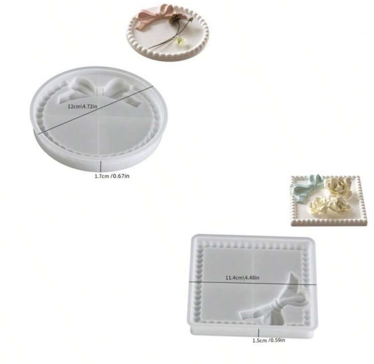 قوالب سيلكون مربع ودائري بنقش بابل صغير وفيونكة WFHM77