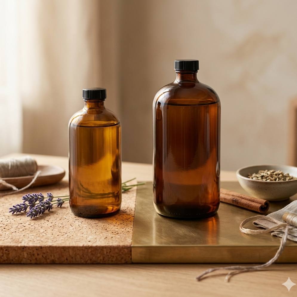 قوراير زجاجية فاخرة معتمة باللون العسلي مع غطاء محكم – لتعتيق العطور وخلطها عبوة 500 مل & 1 لتر