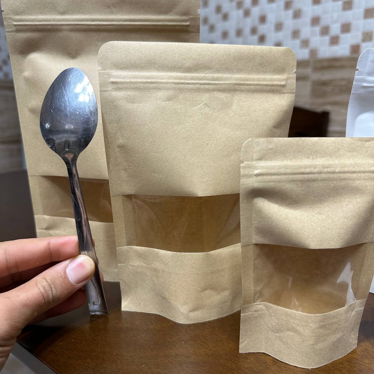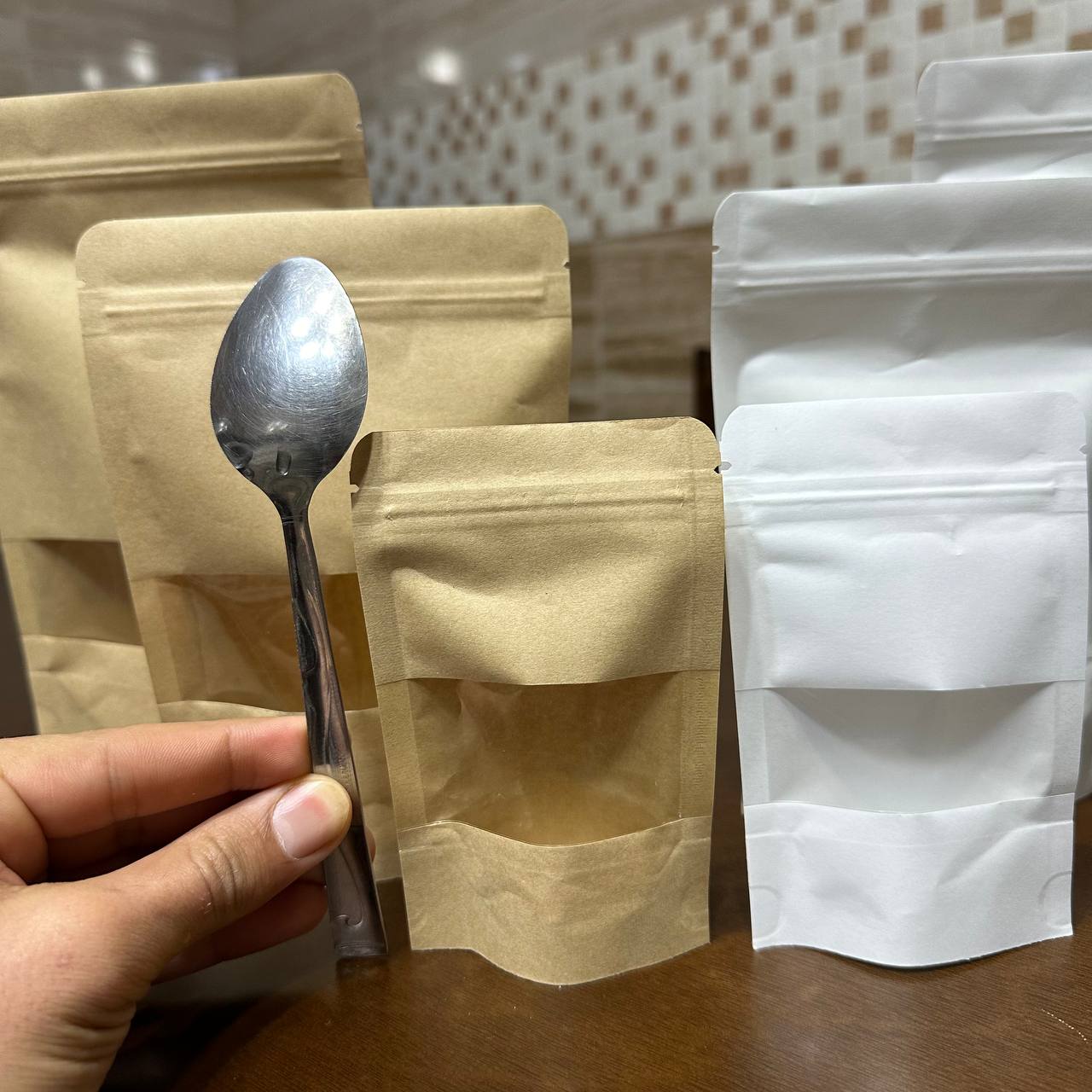 مجموعة أظرف كرافت تعبئة وتغليف 50 ظرف اغلاق محكم بشريط شفاف، مناسبة لأصحاب المشاريع وحفظ المواد الغذائية