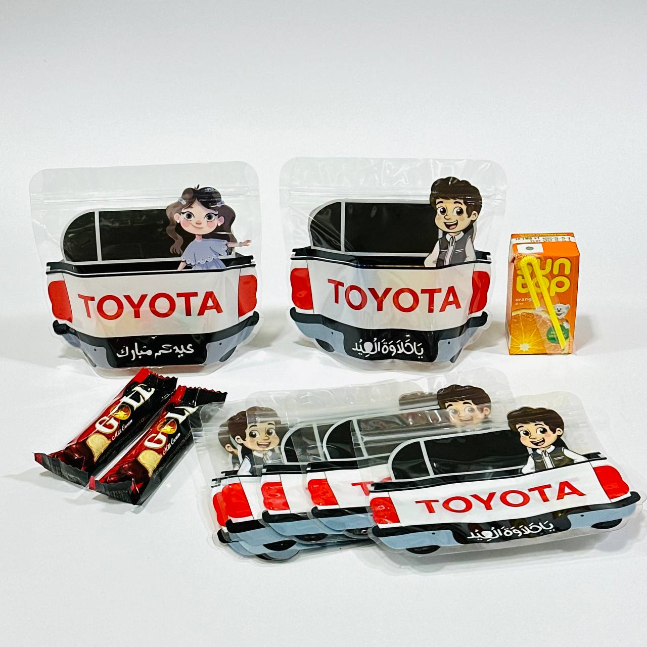 مجموعة 12 حقيبة توزيعات عيدية للأطفال سيارة تايوتا – تكفي عصير سنتوب وحلاوة العيد