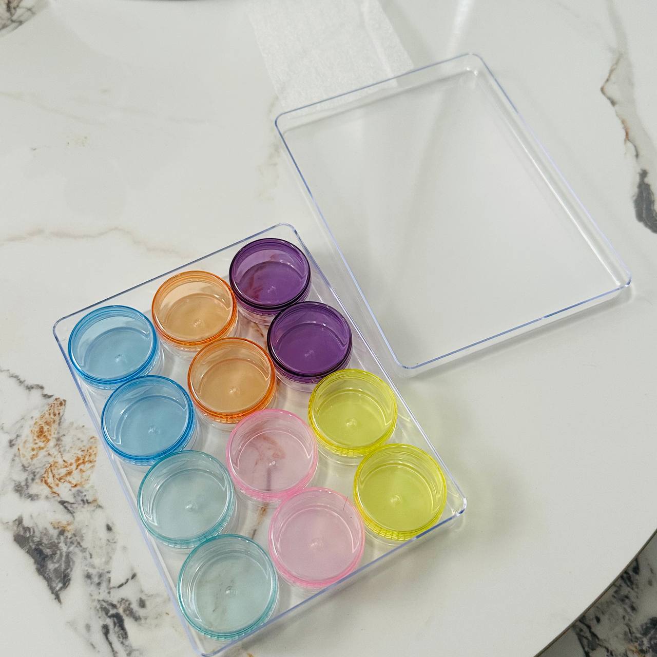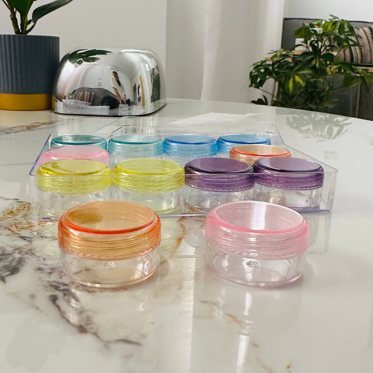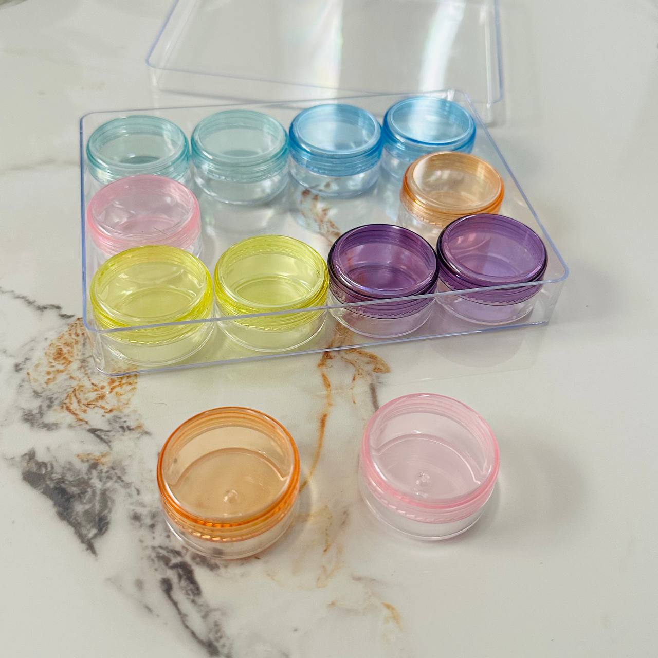 مجموعة 12 علبة كرستال ملونة 10 جرام مع حافظة فاخرة بغطاء لتقسيمات مواد العناية