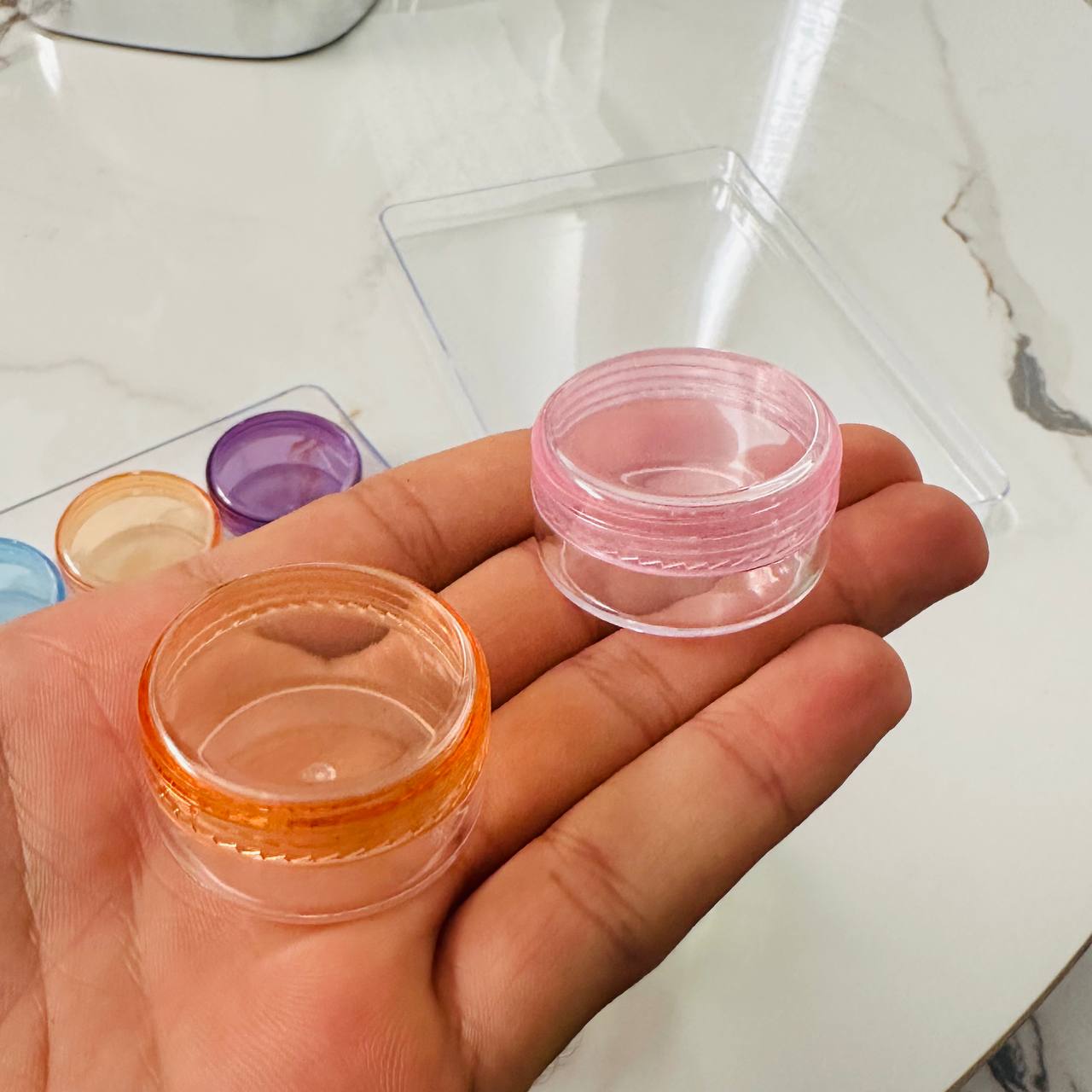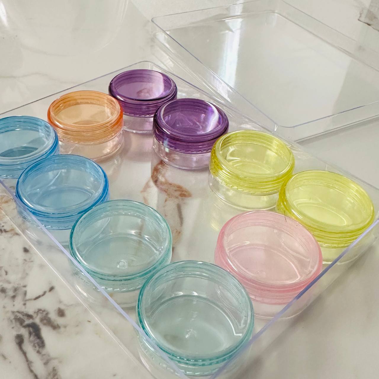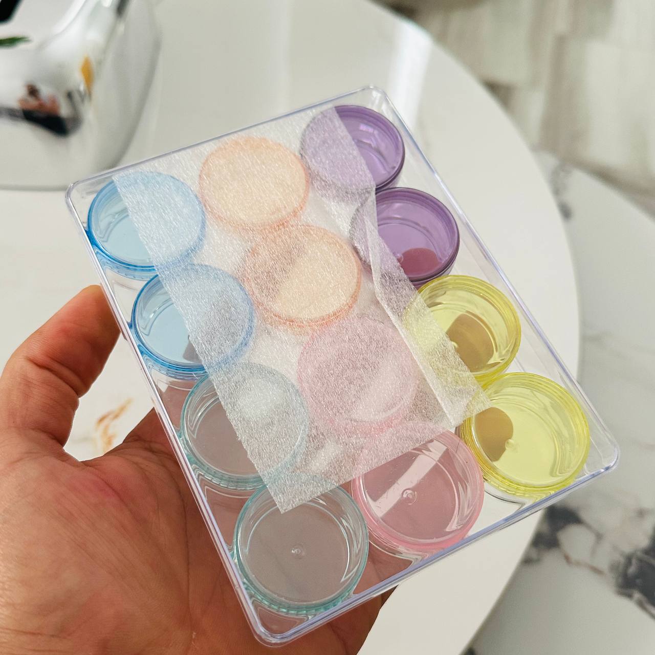 مجموعة 12 علبة كرستال ملونة 10 جرام مع حافظة فاخرة بغطاء لتقسيمات مواد العناية