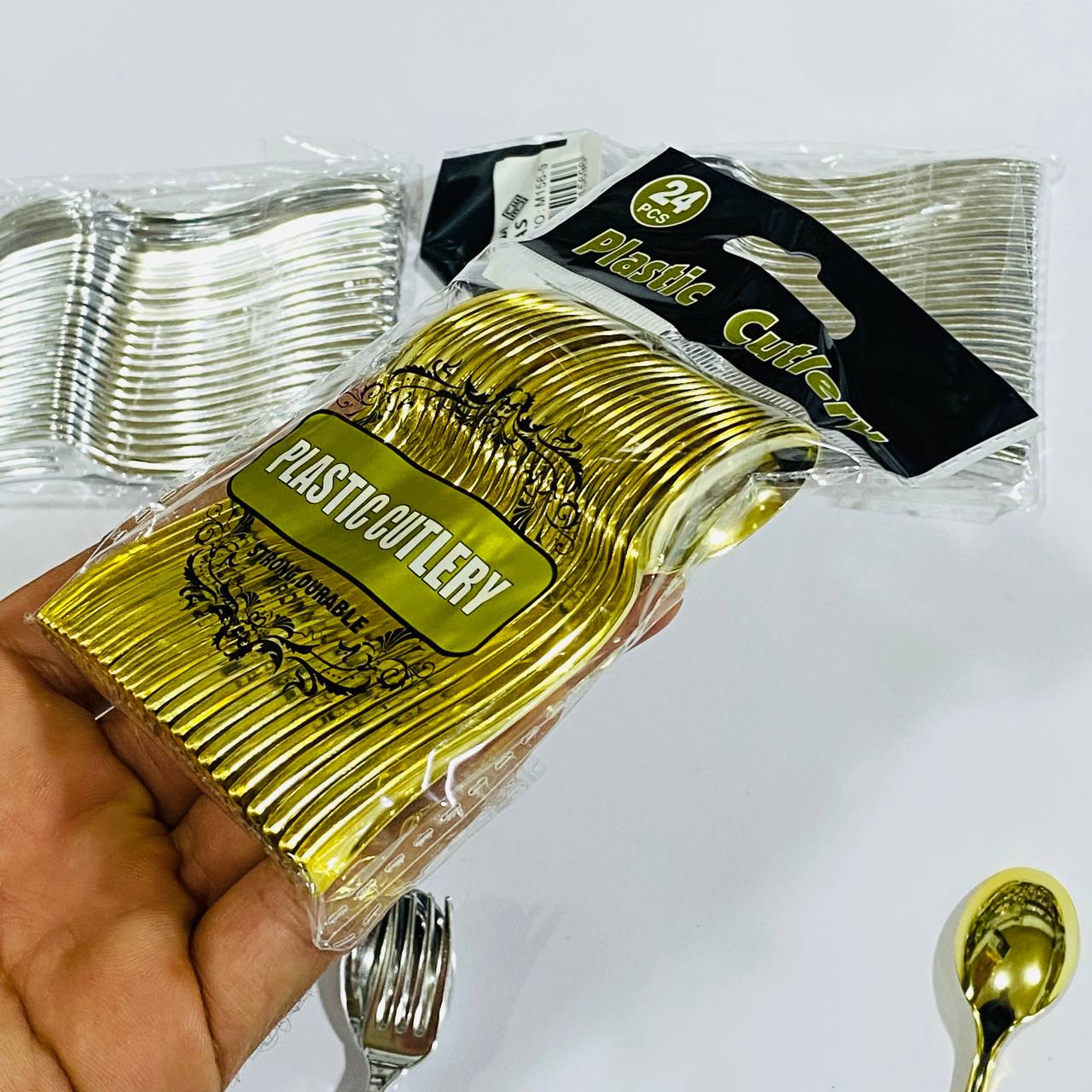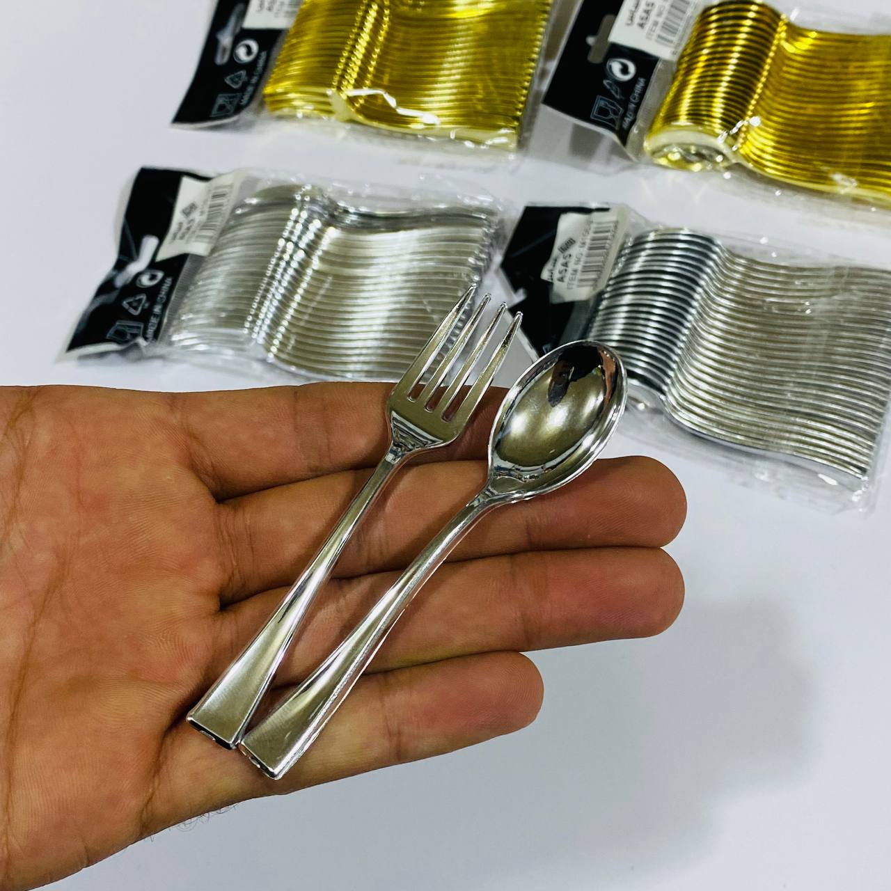مجموعة 24 ملعقة × شوكة صغيرة للمناسبات خاصة بالفروتة والكيك الصغير لون فضي وذهبي