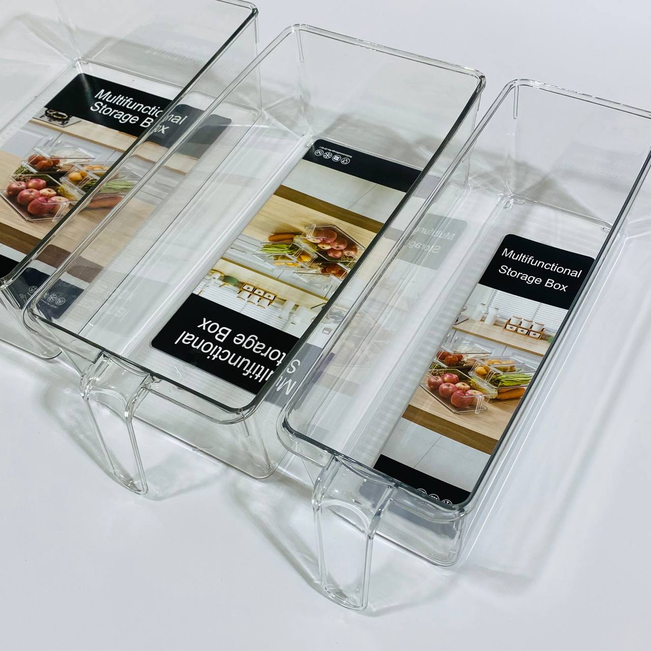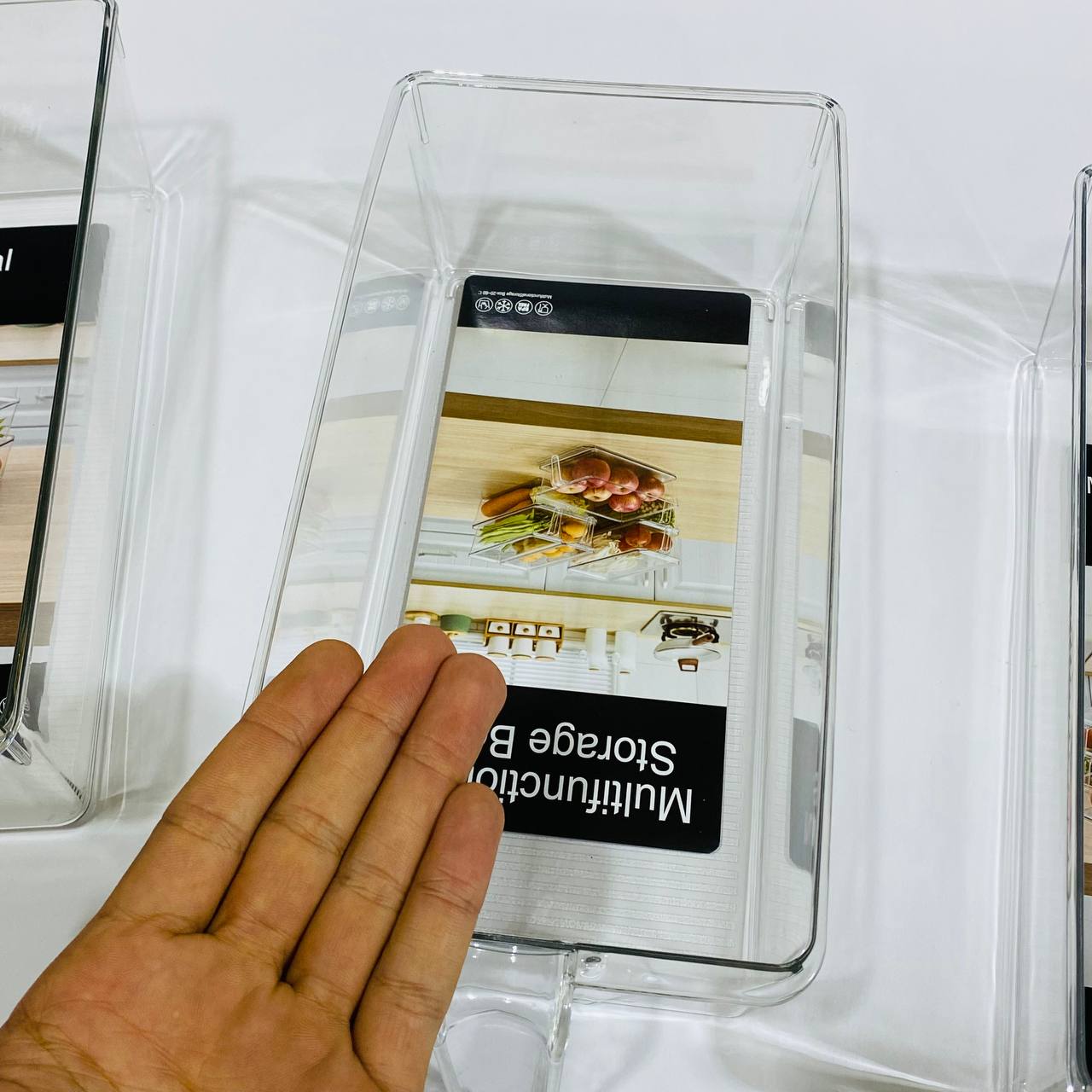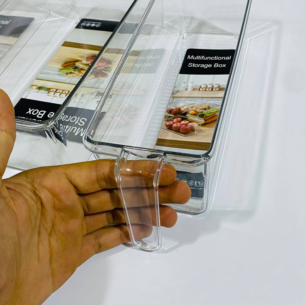 منظم ثلاجة فاخر شفاف 3 أحجام مع ذراع سهل الحمل