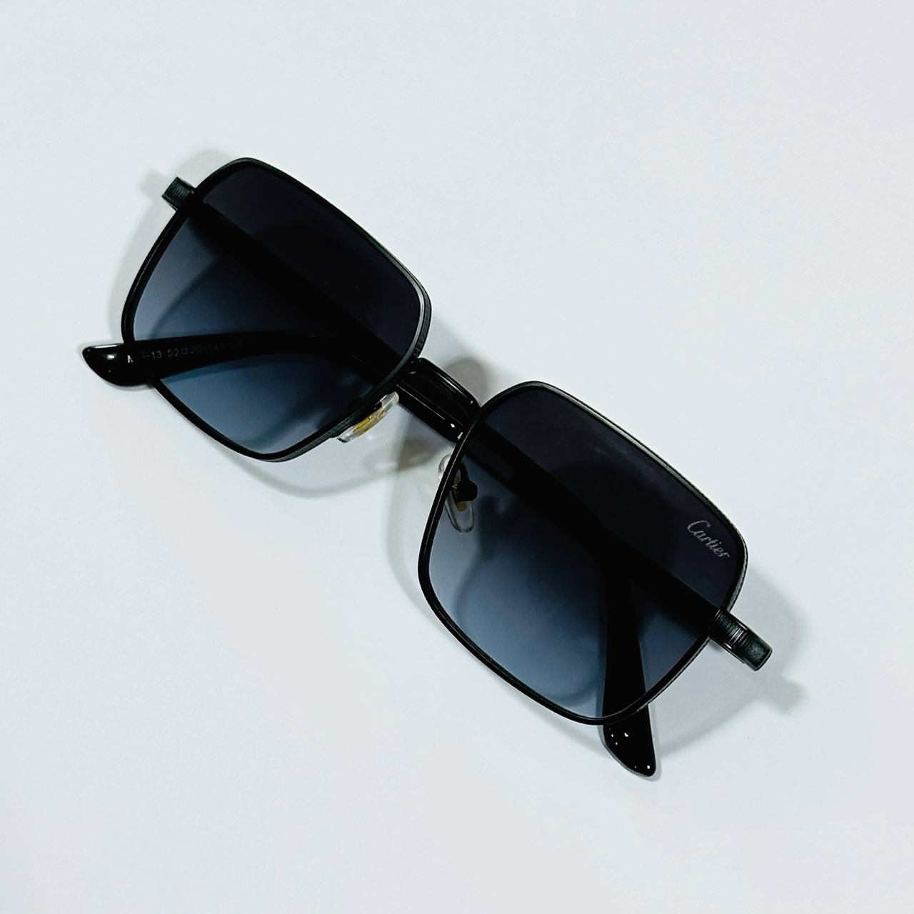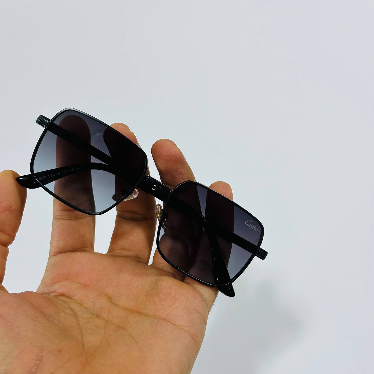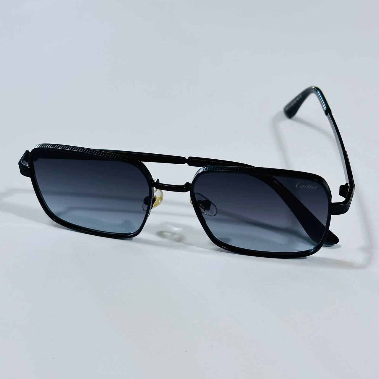نظارة شمسية رجالية تصميم شبيه CARTIER عدسات متدرجة باللون الأسود مع حافظة حماية