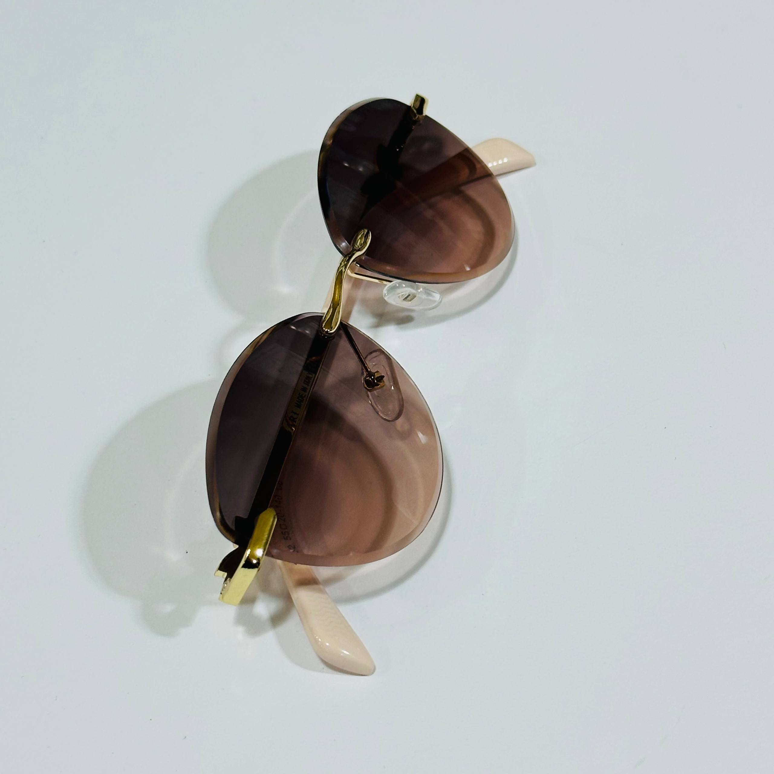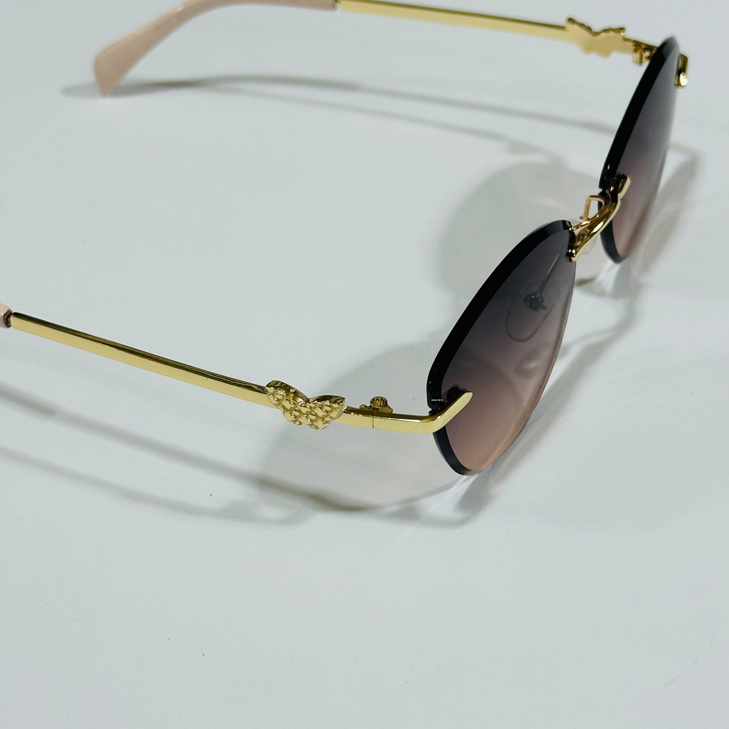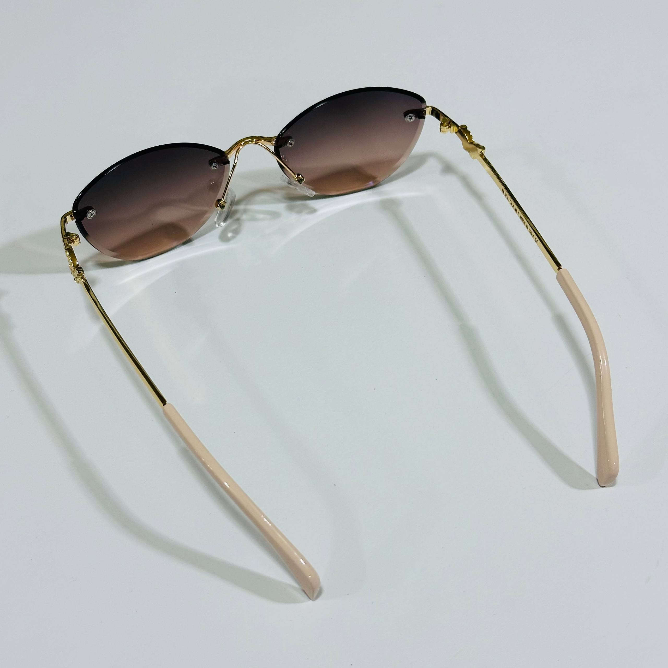 نظارة شمسية نسائية BVLGARI فراشة جانبية – تدرج بني بدون إطار مع حافظة حماية