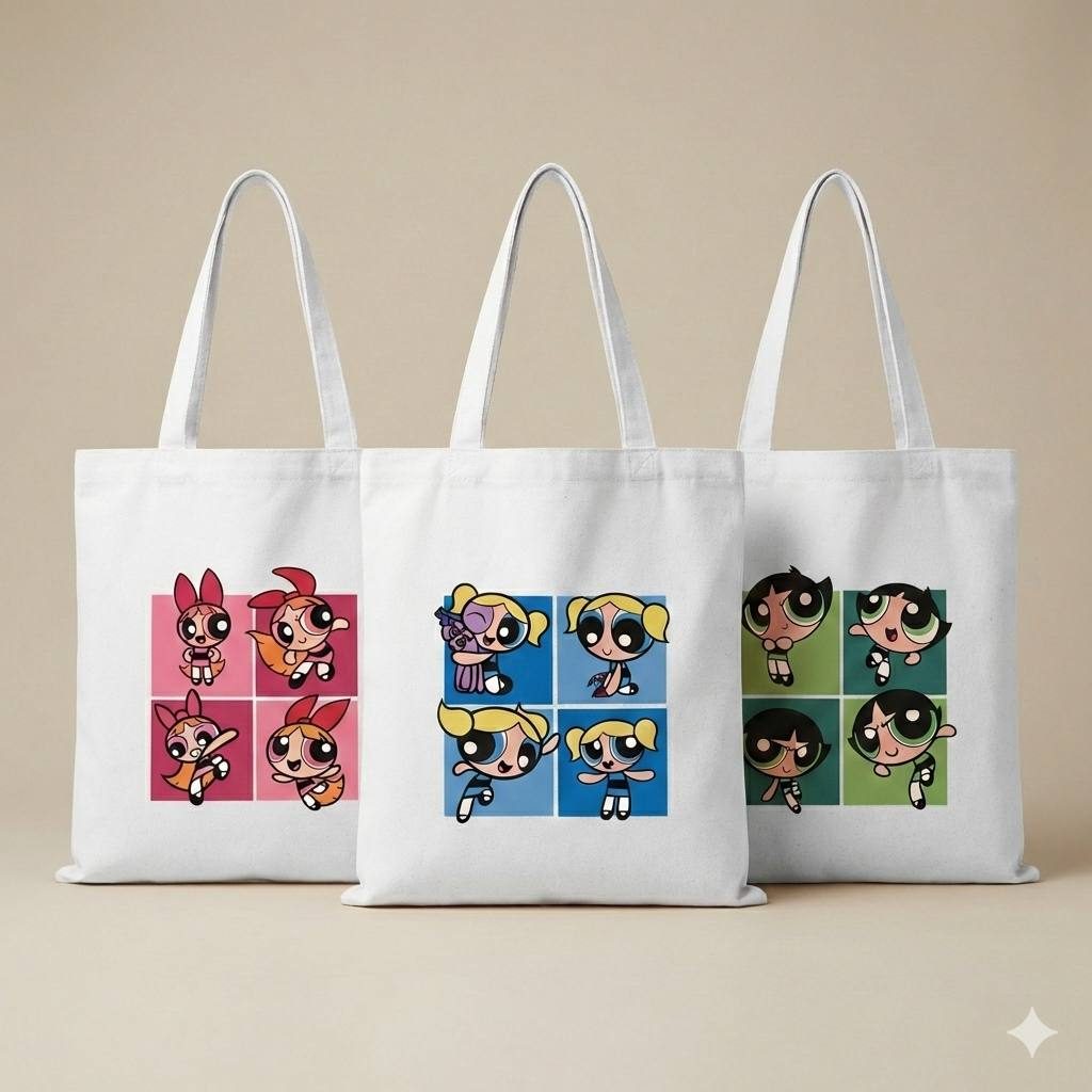 حقيبة توت باق فتيات القوة لون ابيض مع سوستة خامة بوليستر – بابلز بلوسم باتركب